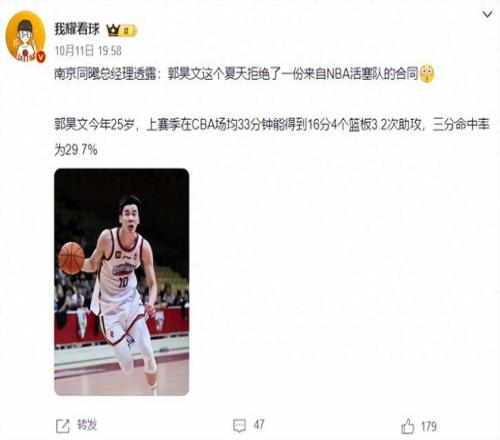 但是,有一名球员却拒绝了NBA合同,那就是郭昊文!据南京同曦总经理透露,郭昊文这个夏天拒绝了一份来自NBA活塞队的合同。
