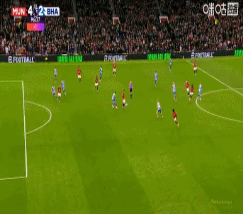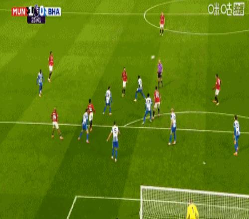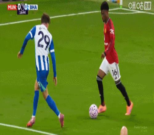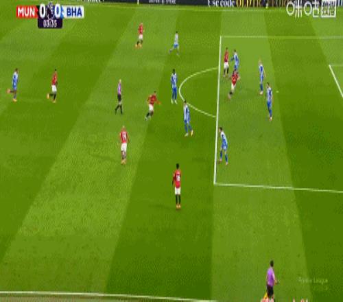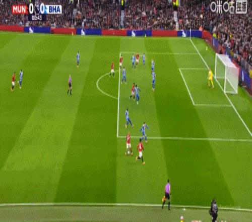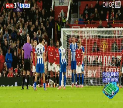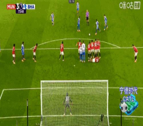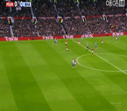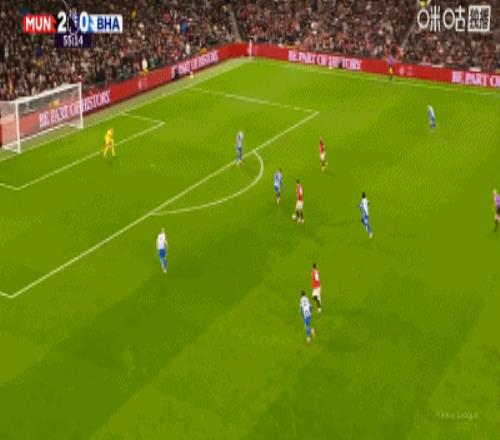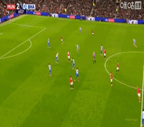 第34分钟,卡塞米罗弧顶处抽射破门,曼联2-0布莱顿