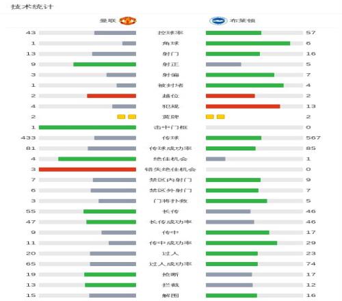 北京时间10月26日英格兰足球顶级联赛 联赛 第9轮,曼联主场对阵布莱顿。曼联马特乌斯-库尼亚破门,卡塞米罗破门,姆伯莫破门。布莱顿维尔贝克破门,哈拉兰博斯-科斯图拉斯破门。最终比分曼联 4-2 布莱顿。