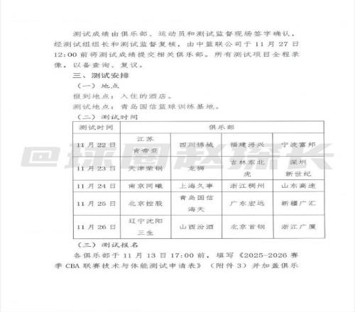 据探长了解,中国篮协已向CBA各俱乐部下发新赛季体测通知。